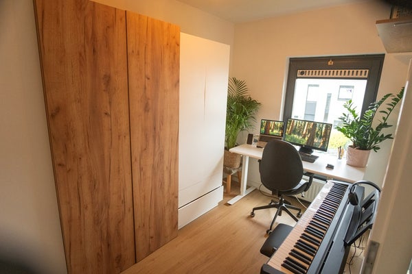 Bij binnenkomst kom je in een nette hal met toegang tot het moderne toilet en de trap naar de bovenverdieping. De ruime en lichte woonkamer beschikt over een comfortabele zithoek en schuifdeuren die openen naar de tuin. Aan de voorkant van het huis vind je de open keuken, volledig uitgerust met inbouwapparatuur, waaronder een vaatwasser, een koel-vriescombinatie en een combioven/magnetron. De keuken wordt in november 2025 gerenoveerd (voor de verhuisdatum). De tuin is recentelijk opnieuw aangelegd en heeft een zonnige zuidoostoriëntatie—ideaal voor ochtend- en vroege middagzon. Aan de achterzijde van de tuin bevindt zich een praktische schuur en een handige achteringang.