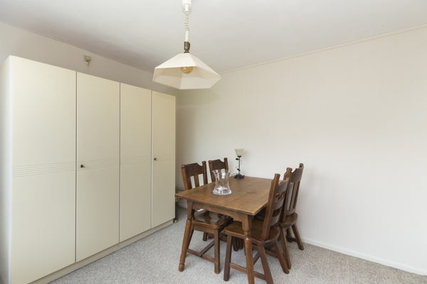 In 1 slaapkamer staat een eenpersoonsbed met kledingkast. De 2e slaapkamer heeft een grote kledingkast. De 3e kamer heeft een eethoek en een kledingkast. De ruime badkamer heeft een douche en een wastafel.