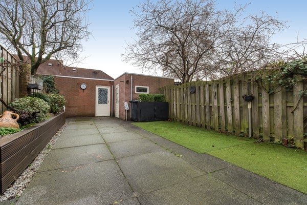 Onderhoudsvriendelijke tuin voorzien van bestrating en volledige omheining, waardoor u hier bijzonder veel privacy ervaart. Achterin de tuin bevindt zich een aparte berging.