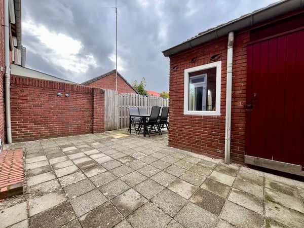 De verzorgde achtertuin is heerlijk diep en voorzien van een stenen berging, perfect voor het stallen van fietsen of extra opslag.
