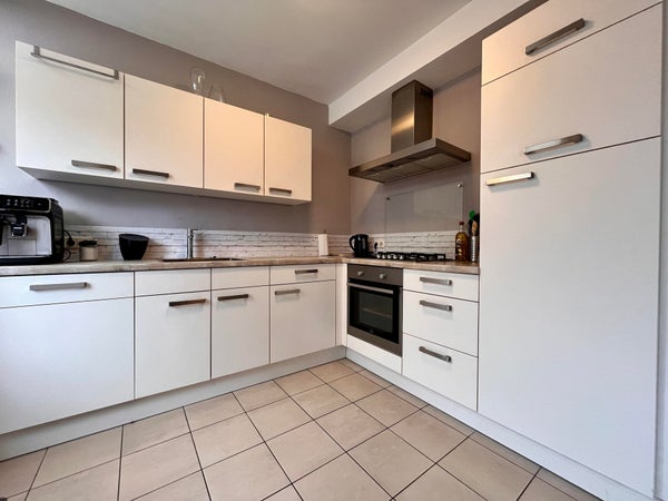 Keuken is modern van opzet en is voorzien van praktische tegelvloer en inbouwapparatuur zoals: spoelbak, 4 pits gaskookplaat, vaatwasser, koelkast (zonder vriesvak), afzuigkap en oven.