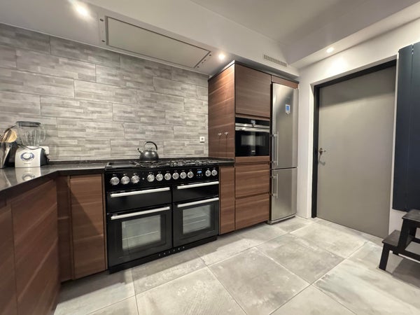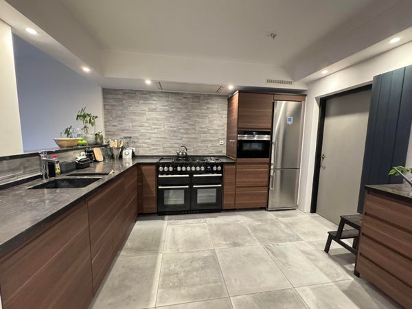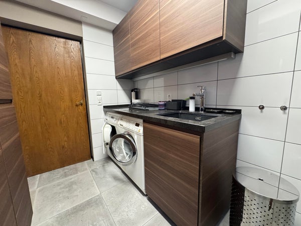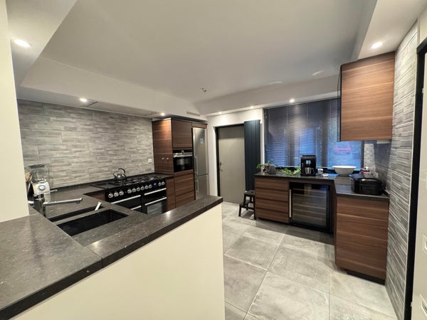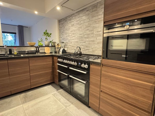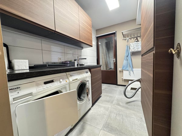 BG: entree, hal, separaat toilet, split level woonkamer / eetkamer met toegang tot de achtertuin em ruime luxe keuken voorzien van alle apparatuur; daarnaast nog een praktische bijkeuken / laundry.