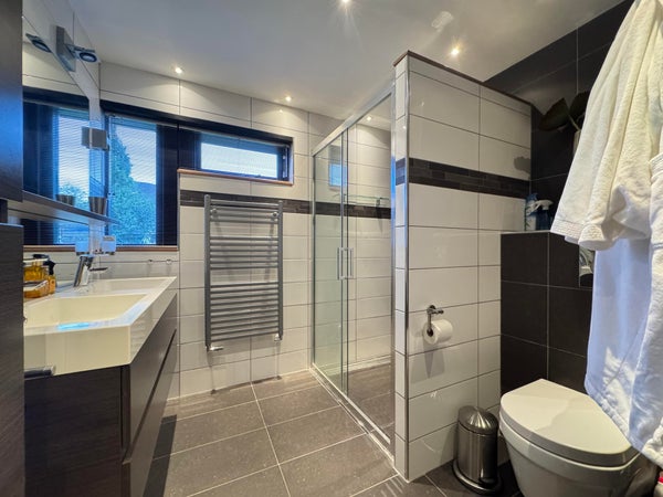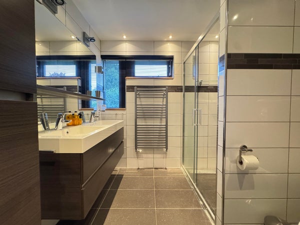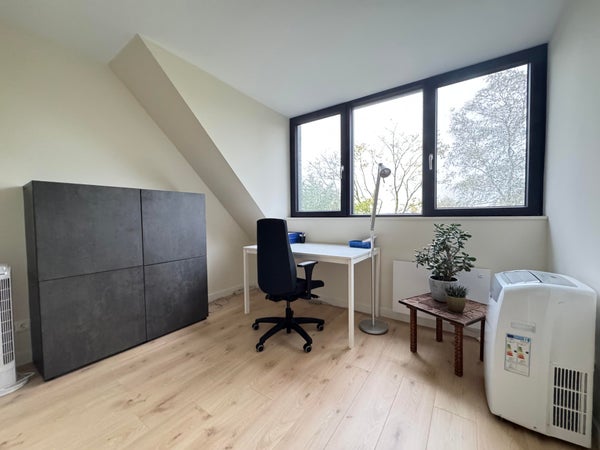 1e etage: master bedroom, ruime kastenkamer / multifunctioele ruimte met klein balkonnetje, study / working from hoe ruimte en luxe badkemr met ruime inloopdouche, wastafel en 2e toilet.