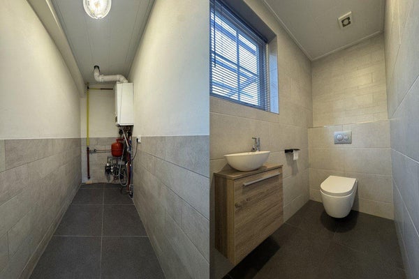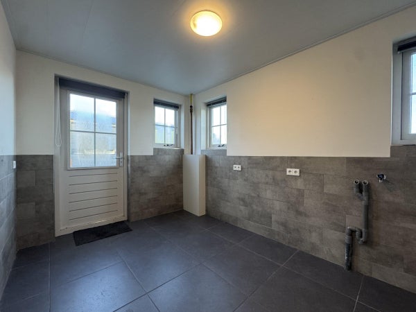Entree, hal, toegang tot woonkeuken, badkamer, toilet en bijkeuken met berging en wasmachine aansluiting.