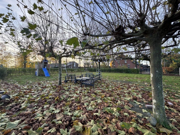 De woning beschikt over een eigen terras en gemeenschappelijk gebruik van een grote tuin. Op het erf is het toegestaan om 2 auto's te parkeren.