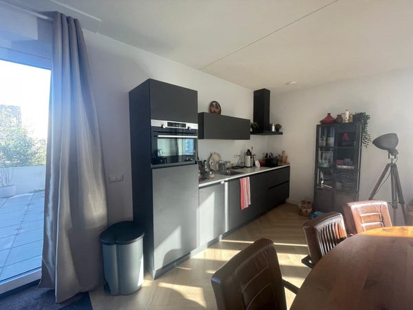 Op de eerste verdieping bevindt zich de zeer ruime woonkamer met open keuken. Tevens geeft de woonkamer toegang tot het ruime terras. De open keuken is zeer sfeervol en compleet, daar deze beschikt over de nodige inbouwapparatuur zoals een vaatwasser, koelkast, oven, inductiekookplaat en afzuigkap. De keuken biedt daardoor alle gemakken van deze tijd voor de kookliefhebber!