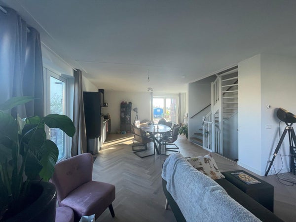 De ruime woning met maar liefst vier slaapkamers en twee badkamers biedt een speelse indeling en is bovendien zeer duurzaam te noemen door het gasloze karakter en de aanwezigheid van zonnepanelen. Tevens zijn er op meerdere plekken screens aanwezig.