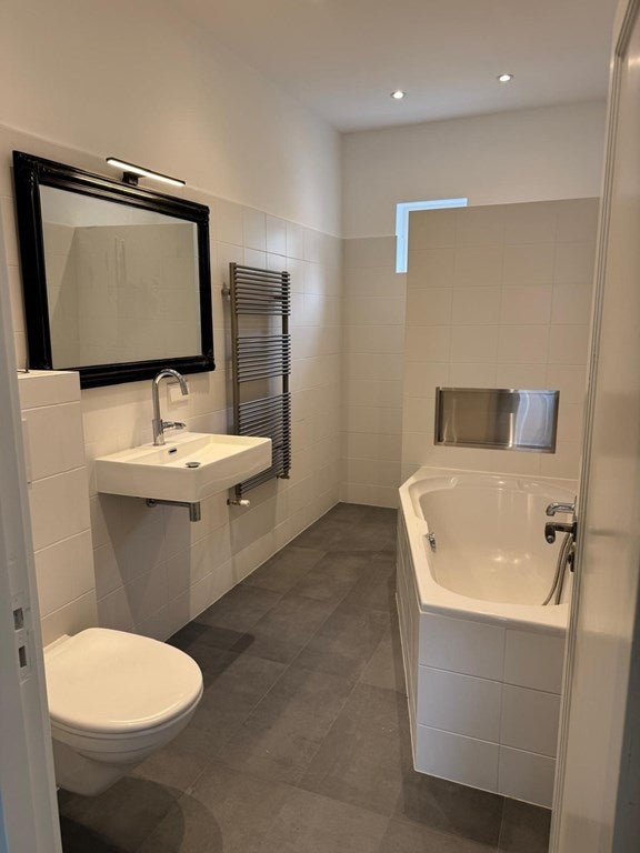 Op de eerste verdieping vind je twee royale slaapkamers, beide keurig afgewerkt. De onlangs gerenoveerde, moderne badkamer beschikt over een ruime inloopdouche, bad, wastafelmeubel, vloer- en spiegelverwarming, handdoekradiator en toilet.