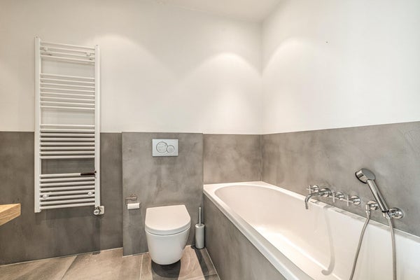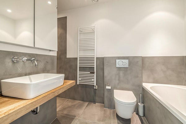 - Nette badkamer voorzien van ligbad, aparte douche, wastafel en WC.