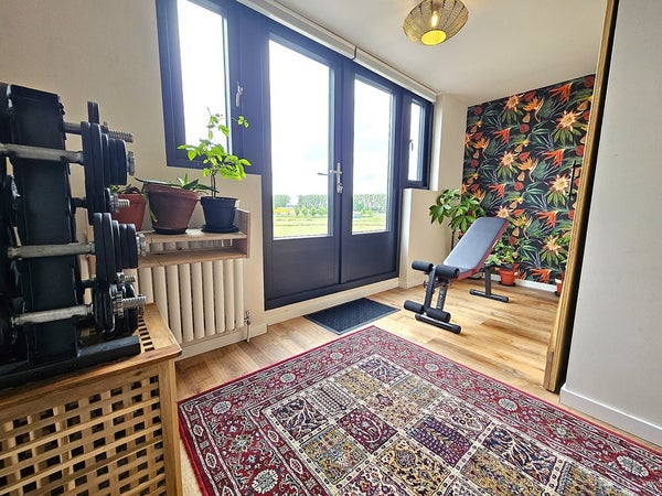 Op de bovenste etage bevindt zich een ruime werk- of studeerkamer. De royale overloop wordt momenteel gebruikt als home gym, maar biedt meerdere gebruiksmogelijkheden.