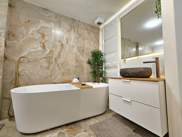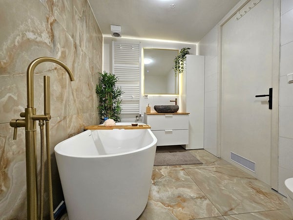 Binnenkomst in een nette hal met modern gastentoilet. De ruime, lichte woonkamer biedt volop leefruimte en sfeer. Aan de achterzijde vindt u een moderne open keuken met hoogwaardige inbouwapparatuur. Via openslaande deuren bereikt u de tuin met terras en jacuzzi – ideaal voor ontspanning.