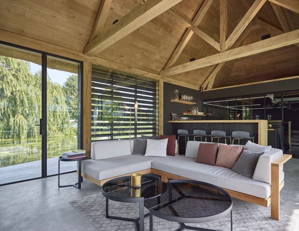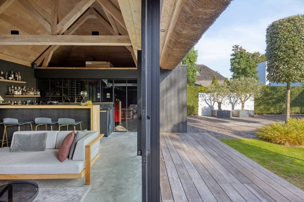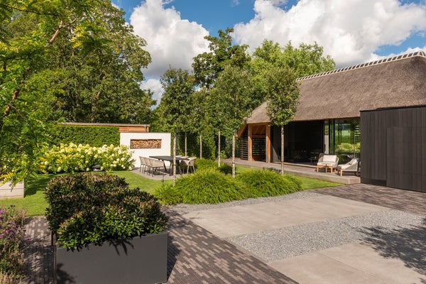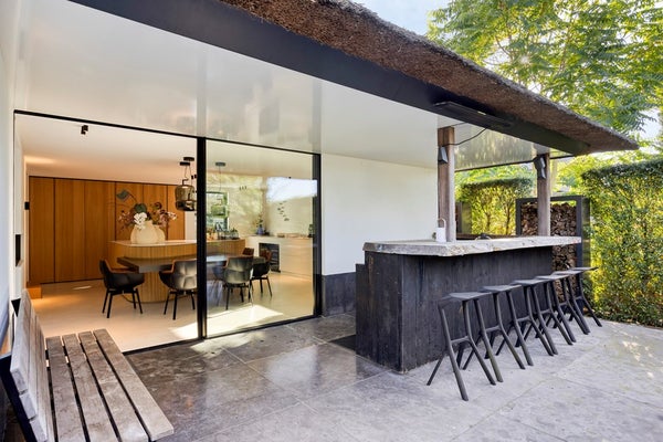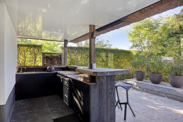 De achterzijde van de woning grenst aan de Ringvaartplas en vormt zo een groene oase van privacy en rust. De luxe buitenbar is voorzien van een volledig uitgeruste buitenkeuken met spoelbak, bakplaten en frituur van Gaggenau, een Little Black Bastard en een koelkast. Dit biedt de perfecte setting voor borrels, diners en gezellige momenten in de buitenlucht. Dankzij de heater is deze ruimte zelfs in de winter een uitnodigende plek.