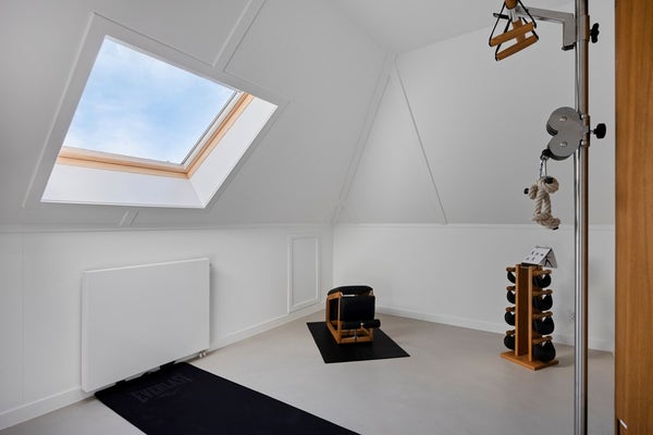 Voor sportliefhebbers is de vierde kamer ingericht als een privé-gym, waar de luxueuze uitstraling van de gehele woning prachtig wordt voortgezet. Uitgerust met hoogwaardige designapparatuur van NOHRD, vormt deze ruimte de ideale plek om in stijl en comfort te trainen.