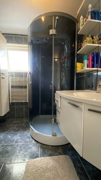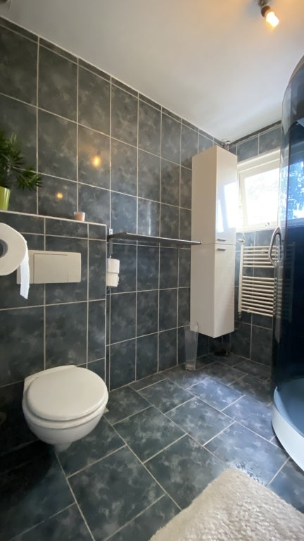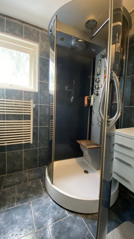 Er is een badkamer met bad en douche. Op de 1e en 2e verdieping heb je een WC.