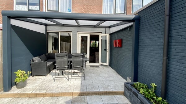 De woning is slim verdeeld over 3 etages. Je stapt binnen in de hal en met een deur kom je de woonkamer in. De halfopen keuken is uitgerust met moderne voorzieningen, en grenzend aan de woonkamer bereikje via een openslaande deur de zonnige tuin op het zuidwesten. Hier kun je het hele jaar door van het buitenleven genieten, dankzij de transparante overkapping. En het handige achterom maakt het dagelijkse leven nog gemakkelijker.
