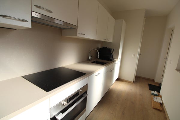 De lichte woonkamer van circa 20 m² biedt voldoende ruimte voor een comfortabele zit- en eethoek. De moderne keuken (2026) is voorzien van inbouwapparatuur, waaronder een kookplaat, combimagnetron, vaatwasser en koelkast.