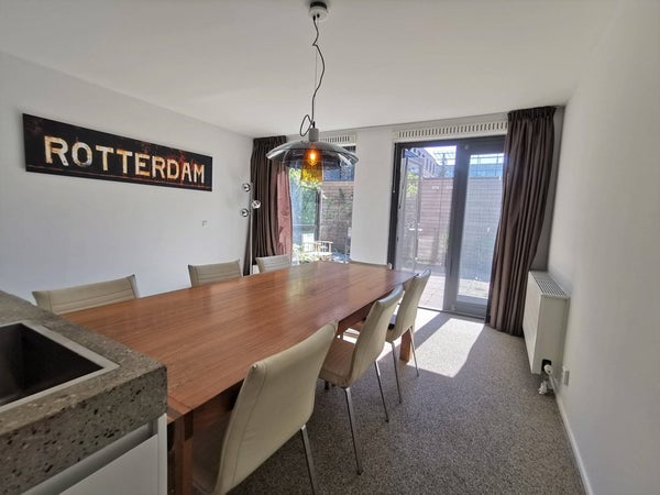 Dit ruime huis met een prachtig uitzicht over de Binnenhaven is gelegen in de populaire wijk Stadstuinen, dicht bij de Erasmusbrug. Op loopafstand vind je verschillende winkels, gezellige restaurants, scholen, een kinderopvang, diverse speeltuinen, het achterliggende stadspark en het levendige Entrepot-gebied. Tram-, bus-, metro- en treinverbindingen zijn ook op loopafstand. In een mum van tijd ben je op Rotterdam Centraal en op de ring/snelwegen van Rotterdam. De wijk heeft een actieve buurtvereniging die regelmatig leuke activiteiten organiseert.