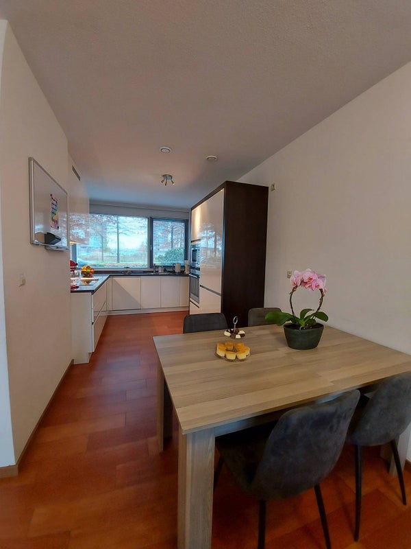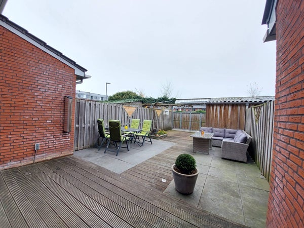 Woonkamer met een optimale lichtbeleving door de woningbrede raampartij met openslaande deuren naar de achtertuin. De woonkamer is voorzien van een ruimte zithoek, eethoek met verbinding naar de luxe open keuken aan de voorzijde. Deze is voorzien van inbouw inductie kookplaat, inbouw afzuigkap, combi-magnetron/oven, vaatwasmachine en koel-vries combinatie. De achtertuin is ruim en licht op het oosten. Tevens bevindt zich hier een ruime schuur aan de achterzijde van de tuin. Aan de achterzijde vindt u een rustige straat en is een speelveld gesitueerd.