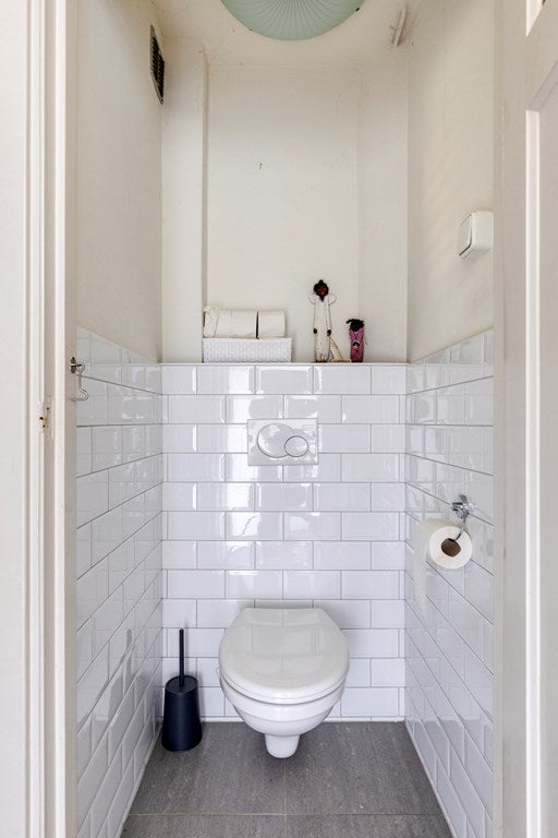 De badkamer is ook gelegen op deze etage en is uitgerust met een dubbele wastafel, een ruime spiegel en een luxe inloop regendouche. Het tweede toilet op deze verdieping is apart gelegen, wat extra gemak biedt voor het hele gezin. Op de derde verdieping, de zolder, vind je nog extra ruimte die op verschillende manieren te gebruiken is. Hier bevindt zich het washok, voorzien van een wasmachine en droger, evenals extra bergruimte. Dankzij de omvang van de zolder is het ook uitstekend mogelijk om deze ruimte in te richten als vierde slaapkamer, waardoor de woning zeer flexibel in gebruik is. Deze ruimte is al voorzien van een slaapbank en kastruimte.