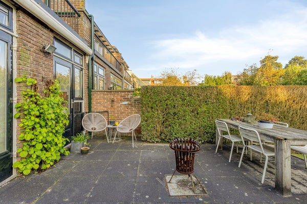 Aan de achterzijde staat de eettafel bij de open keuken, die is uitgerust met alle benodigde inbouwapparatuur, zoals een vijfpits kookplaat, koelkast, vaatwasser en oven. Het keukeneiland vormt het hart van de ruimte: een gezellige plek om tijdens het koken in contact te blijven met familie en vrienden, ideaal voor borrels of een snel ontbijt. Via de openslaande deuren bereik je de royale, zonnige achtertuin (noordoosten), waar dankzij de diepte van de tuin de hele dag door altijd een plekje in de zon te vinden is. Ook staat er een tuinhuisje met voldoende opbergruimte. Er is een achterom aanwezig. Vanuit de hal is er ook toegang tot de kelder. Hier staat een vriezer en is extra bergruimte aanwezig.