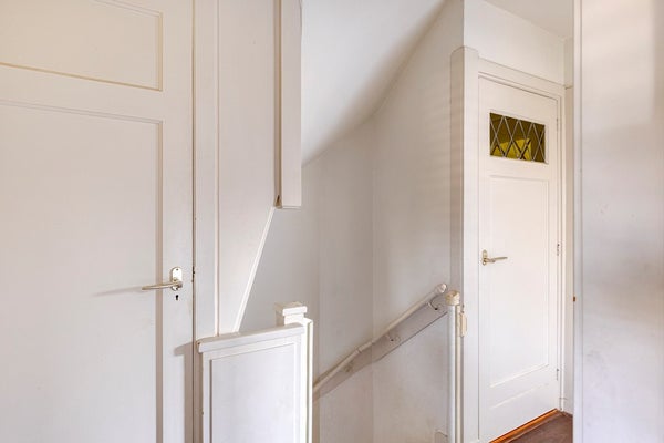 Op de eerste verdieping vind je drie slaapkamers. De hoofdslaapkamer is voorzien van een ruim tweepersoonsbed, een ingebouwde kledingkast en een eigen balkon met uitzicht op de tuin. De tweede slaapkamer is momenteel ingericht als kinderkamer, maar kan ook uitstekend dienen als logeerkamer. De derde, kleinere slaapkamer is flexibel in te richten en kan zowel als kinderkamer of als werkkamer worden gebruikt. In deze ruimte is momenteel uitsluitend een ladekast aanwezig.