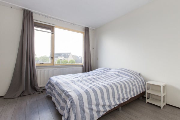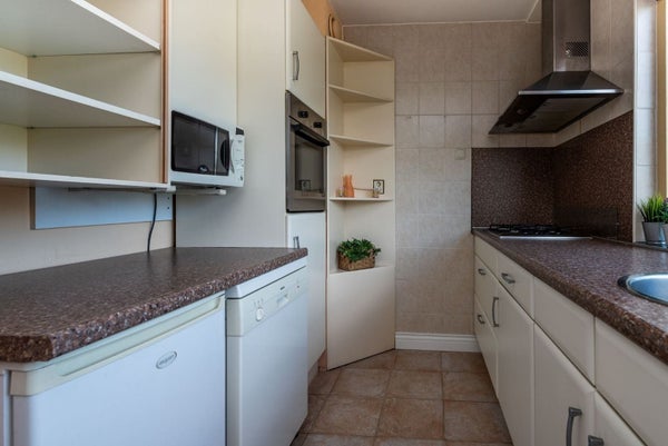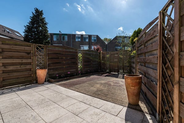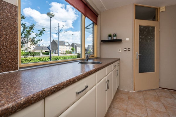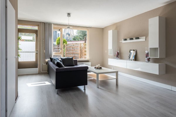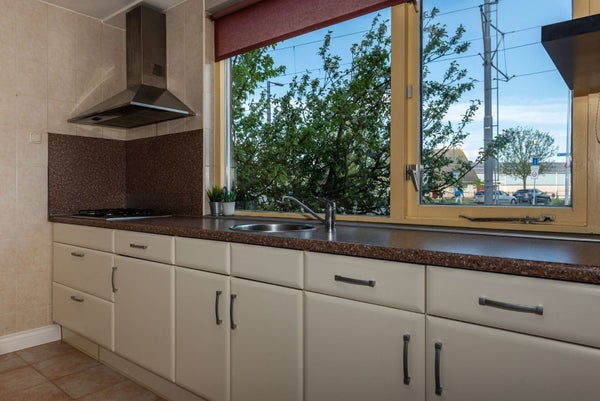 De ruime woonkamer (ca.30 m2) is gelegen aan de achterzijde van de woning en geeft u toegang tot de achtertuin (ca.27 m2) welke gelegen is op het zuidoosten. Er is een zonwering aan de buitenzijde, welke handmatig bediend kan worden. De keuken is voorzien van een gaskookplaat met afzuigkap, vaatwasser, koelkast, een vriezer, oven, magnetron en een spoelbak.