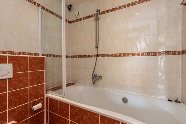 Via de vaste trap in de woonkamer heeft u toegang tot de eerste verdieping. Hier bevinden zich twee grote slaapkamers (ca.20m2) en een ruime badkamer. De badkamer is voorzien van een toilet, wastafel, een douche/ligbad en voldoende kastruimte.