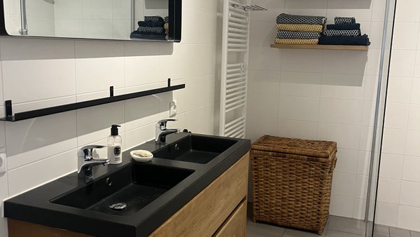 Beide badkamers zijn modern en uitgerust met een bad, inloopdouche, dubbele wastafels en premium armaturen. Verschillende aparte toiletten verhogen het comfort van het huis.