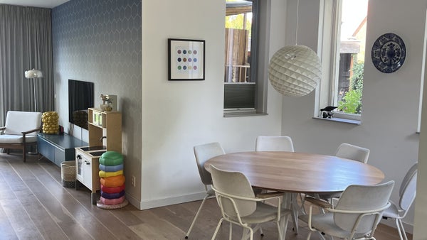Het huis beschikt over vier slaapkamers, twee moderne badkamers en een lichte woonkamer met een open keuken. Grote ramen zorgen voor veel natuurlijk licht, waardoor een warme en uitnodigende sfeer ontstaat.