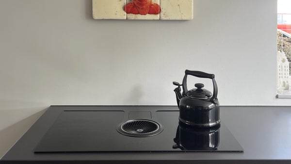 De keuken is volledig uitgerust met hoogwaardige apparatuur, waaronder een Bora kookplaat met geïntegreerde afzuiger, AEG oven en magnetron, evenals Etna inbouwapparatuur (koelkast, vriezer, vaatwasser, droger en wasmachine).