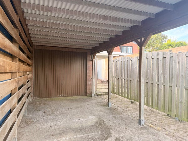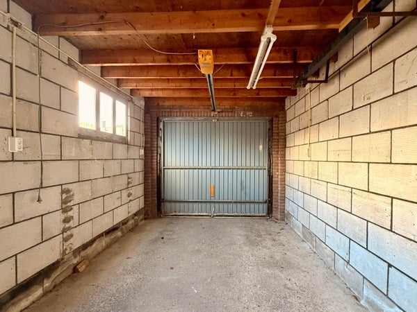 De achtertuin beschikt over een achterom, een stenen berging (ideaal voor fietsen en opslag) en een garage met ruimte voor één auto. Aan de aanbouw bevindt zich bovendien een overkapping, met mogelijkheid om een tweede auto te parkeren.