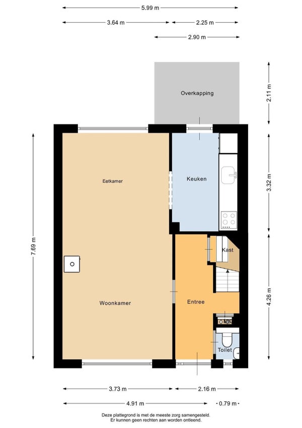 Begane grond met woonkamer, open keuken en toegang tot de tuin.