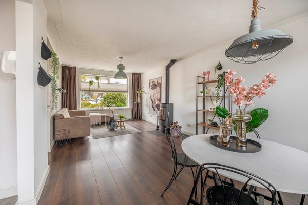 Deze ruime en moderne woning is voorzien van grote ramen die zorgen voor veel natuurlijke lichtinval. Een lichte woonkamer en een moderne inrichting die zorgt voor een warme en huiselijke sfeer.