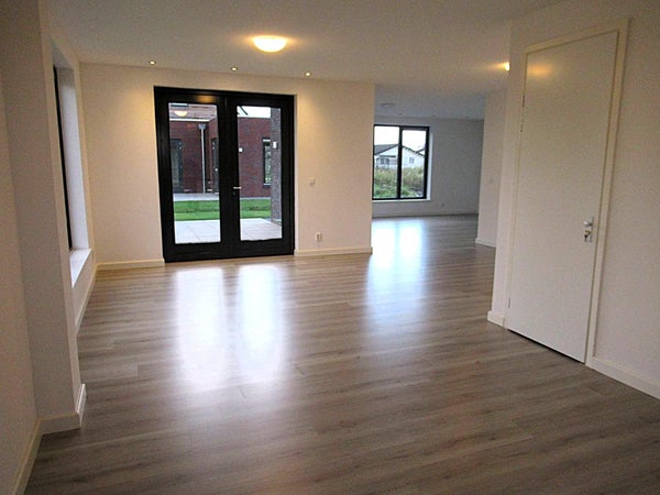 Deze vrijstaande woning biedt een woonoppervlak van maar liefst 131 m², op een riant perceel van 464 m². Zodra je de voordeur opent, word je begroet door warme lichtinval die het huis de hele dag door een vriendelijke uitstraling geeft. De woonkamer in Z-vorm is enorm ruim, met grote ramen rondom en twee dubbele openslaande tuindeuren die je bijna letterlijk de zonnige tuin in trekken. Je hoort het zachte ruisen van de bladeren, je voelt de namiddagzon op je huid en ruikt het gras dat nog een beetje vochtig is van de ochtend. Het is alsof de tuin hier onderdeel is van je interieur.