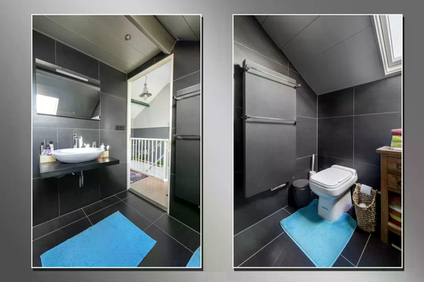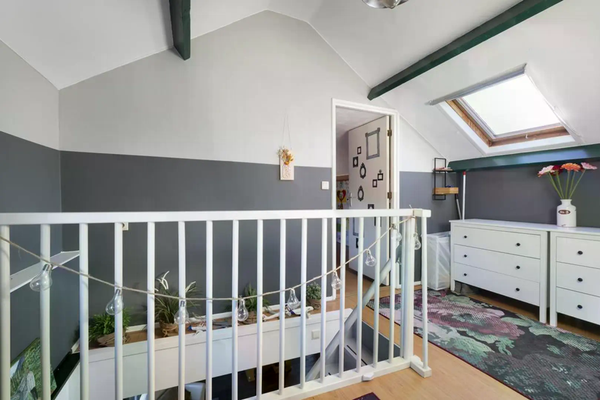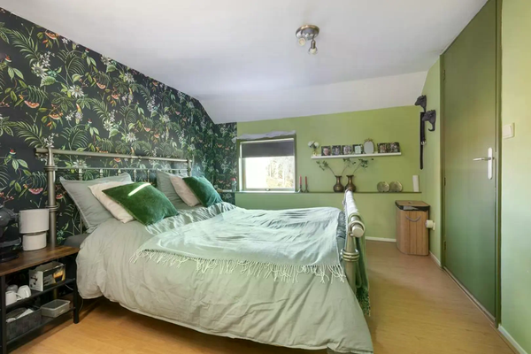 Op de eerste verdieping bevinden zich drie slaapkamers en een badkamer. Aan de linkerkant van de trap ligt de royale masterbedroom. Rechts van de trap vindt u de badkamer, samen met de tweede slaapkamer. Achter deze kamer bevindt zich nog een derde slaapkamer, die ook uitstekend gebruikt kan worden als kinderkamer, kantoor of logeerplek. Deze indeling maakt de verdieping praktisch én flexibel voor verschillende gezinssamenstellingen.