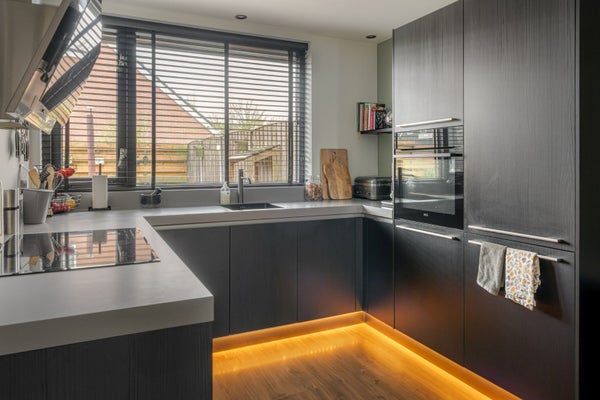 Indeling: de ruime oprit en garage biedt plaats voor twee auto's. Er is een laadpunt aanwezig voor elektrische auto's.
