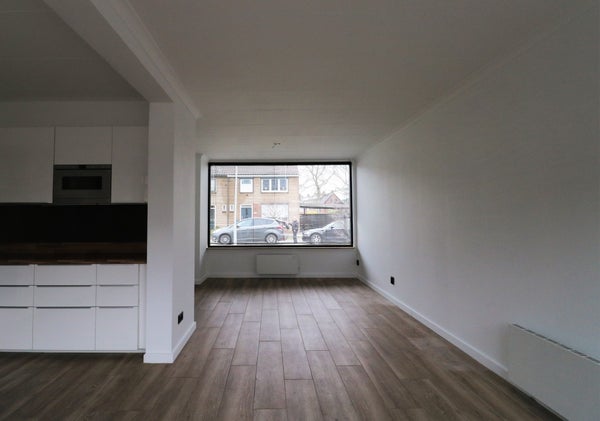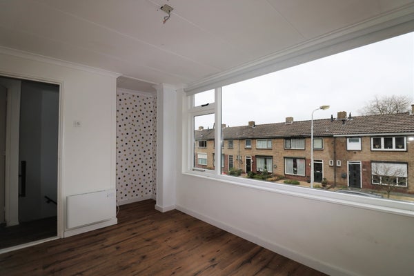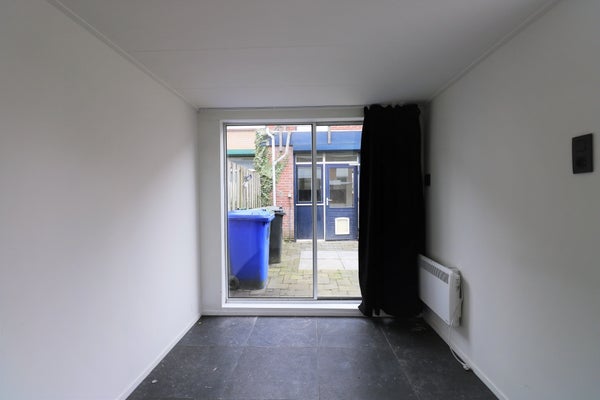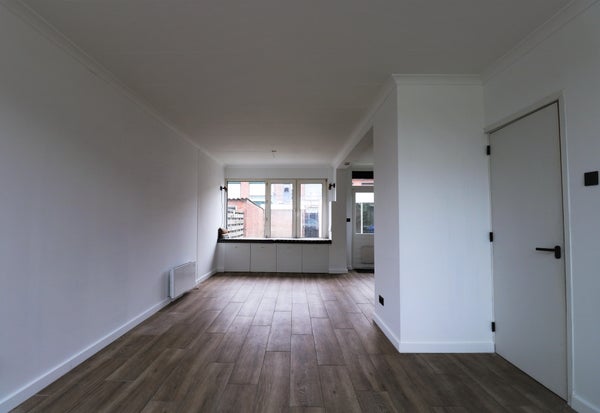 De woonkamer die kort geleden volledig is geschilderd en opgefrist heeft grote raampartijen (dubbel glas) en is aan de voor- en achterzijde voorzien van rolluiken. Deze grote raampartijen zorgen voor een fijne lichtinval in de woonkamer. Ook is de woonkamer voorzien van een keurige pvc-vloer.