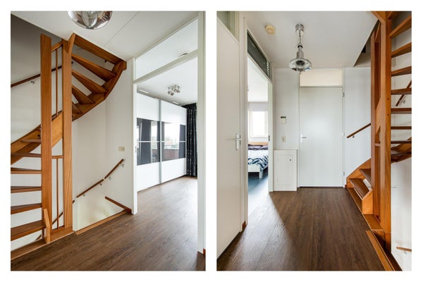 De slaapkamers en overloop op de derde verdieping zijn voorzien van een linoleumvloer.