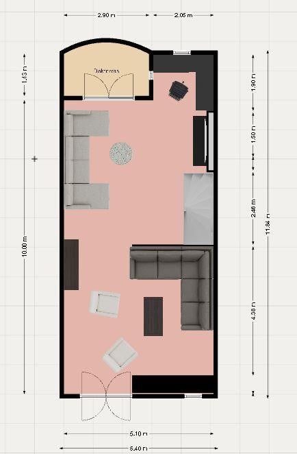 Aankomend op de eerste verdieping stapt u direct de woonkamer binnen.