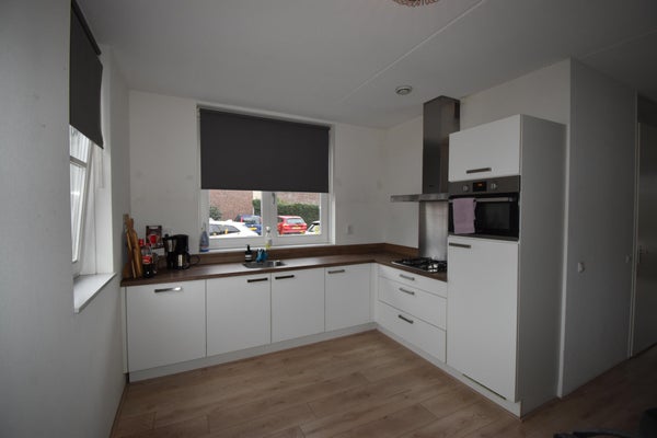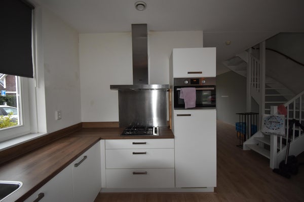 Bij binnenkomst kun je kiezen, waar wil je heen? Kies je voor rechtdoor dan ga je via de open trapopgang naar de 1e verdieping. Stap je naar rechts, dan ga je naar de keuken, en kies je voor linksaf dan ga je naar de woonkamer. De keuken in L-vormige opstelling heeft aan 2 zijden van de woning ramen zodat je lekker veel licht op het aanrecht of de keukentafel hebt. De keuken is voorzien van een gaskookplaat, afzuigkap, combi-oven, koelkast en vaatwasmachine. Ook de woonkamer heeft veel raampartijen en is ook heerlijk licht. De pui in de woonkamer heeft dubbele openslaande tuindeuren maar er is ook een enkele deur naar de tuin. De berging in de tuin is ook te bereiken via een achterom. De tuin is afgesloten middels een hekwerk en voorzien van groenblijvende beplanting. De tuin aan de voorzijde van de woning is onlangs aangeplant om shortcuts te voorkomen.