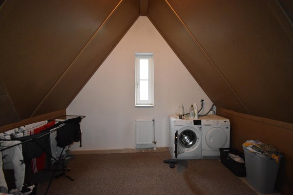 De zolder is te bereiken via een vaste trap en beschikt over ramen in de nok aan de voor- en achterzijde van de woning. De zolder is verdeeld in 2 ruimtes waar in één ruimte de aansluiting voor het witgoed en ook de cv-installatie aanwezig is. De zolder leent zich uitstekend voor een extra (werk)kamer en achter de knieschotten is een zee van bergruimte aanwezig.