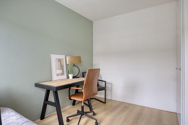 Op de eerste verdieping bevinden zich drie slaapkamers. De slaapkamer aan de voorzijde biedt ruimte voor een grote kastwand en is voorzien van een zonnescreen. De twee slaapkamers aan de achterzijde zijn geschikt als kinder-, werk- of logeerkamer. Alle kamers hebben laminaatvloeren en wanden met structuurafwerking.