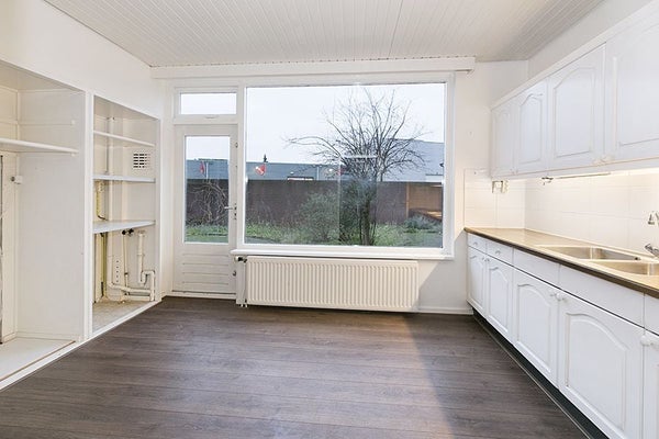Je komt binnen via de entree met hal, trapopgang, toilet en handige kelderkast. De ruime woonkeuken vormt het hart van de woning – een fijne plek om te koken en samen te komen. De U‑vormige woonkamer biedt veel lichtinval en een prettige indeling voor zowel een zit- als eethoek. Via de woonkamer heb je toegang tot de ruime, besloten tuin.