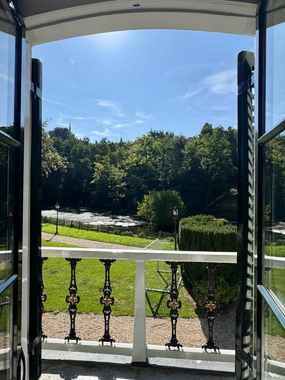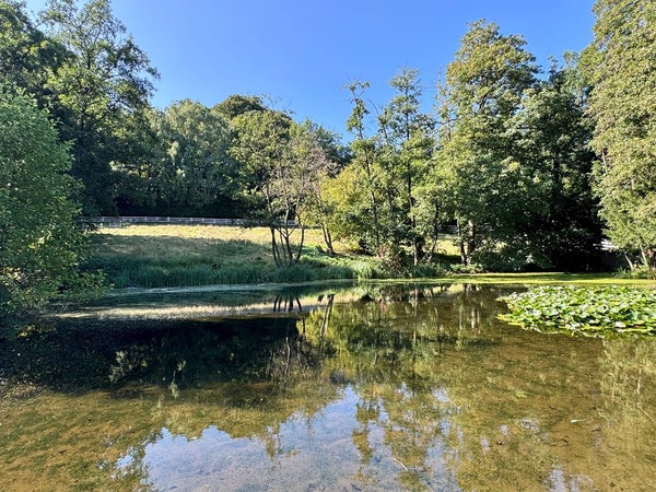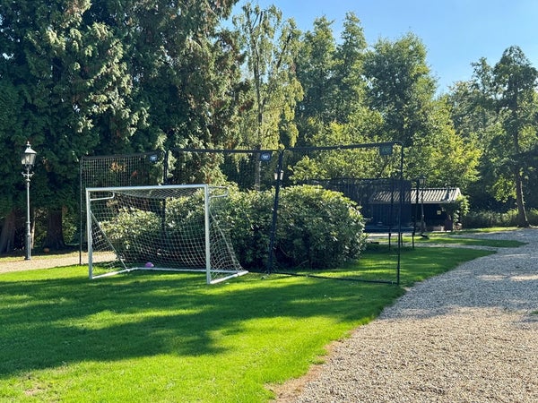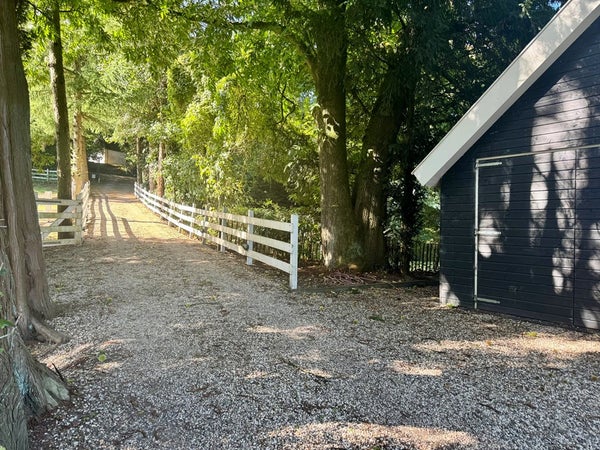 Het geheel is uniek gelegen op een glooiend perceel van meer dan 16.000 m² in een prachtige, rustige omgeving. Via de elektrische toegangspoort ga je over de oprit, langs weides en een waterpartij naar de woning. De woning is omringd met groen, uitgestrekte grasvelden en verschillende terrassen om van het buitenleven te genieten. De tuin biedt veel privacy en is een fijne uitbreiding van de woonruimte.