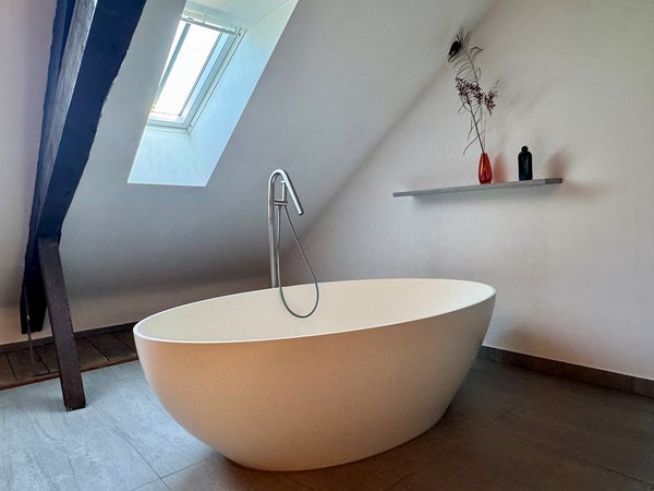 De woning is gasloos en beschikt over een warmtepomp met vloerverwarming en muurverwarming, die zowel verwarmt in de winter als koelt in de zomer