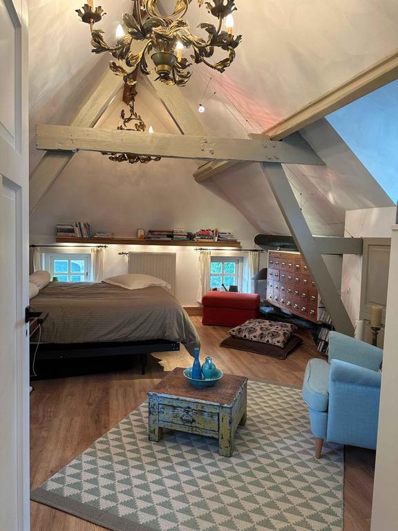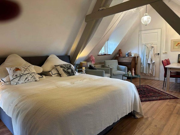 De slaapkamers zijn ruim en sfeervol ingericht, voorzien van comfortabele bedden, werkplekken en opbergruimte. Op de bovenverdieping bevindt zich tevens een kleine kitchenette met koelkast en koffiemachine. Ideaal voor extra gemak.