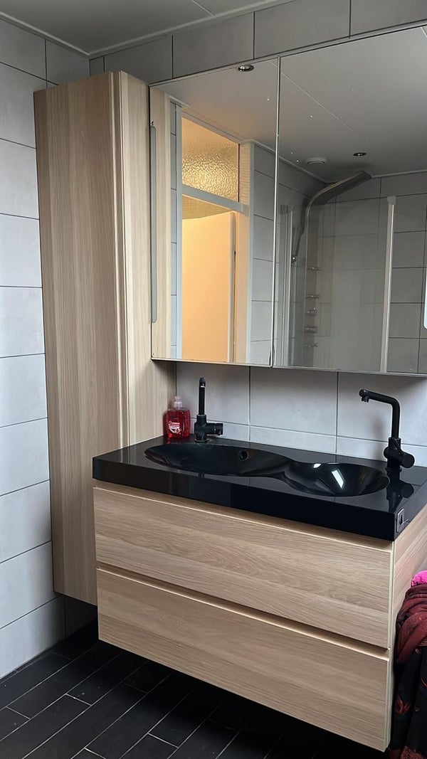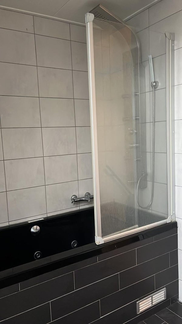 • Badkamer: Moderne badkamer met ligbad/douchecombinatie, wastafelmeubel met dubbele wasbak, toilet en luxe afwerking.