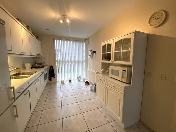 De woning heeft een lichte woonkamer met open keuken aan de voorzijde. Door de grote raampartijen komt er veel licht naar binnen.