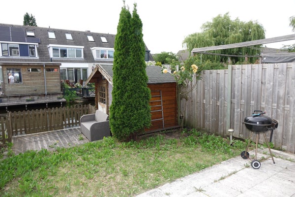 Indeling: Entree van de woning op de begane grond. Hal met toegang tot toiletruimte. Zeer riante woonkamer met toegang tot de tuin op het zuiden. In de tuin is een schuurtje gelegen. Zeer luxe semi-open keuken aan de voorzijde met alle benodigde inbouwapparatuur, waaronder een koel-/vriescombinatie, combi-magnetron, oven, vaatwasser, gaskookplaat en afzuigkap. Op de eerste etage zijn 3 slaapkamers gelegen, waaronder de master bedroom die van een tweepersoonsbed en grote kleding kast voorzien is. Moderne badkamer voorzien van een ligbad, aparte douche en een luxe wastafel. Tweede separate toiletruimte. Trap naar de zolder waarvan twee slaapkamers zijn gemaakt. Overloop met wasmachine.