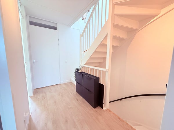 Welkom entreehal met toilet, meterkast (glasvezel klaar) en trap.